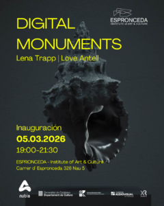 ESPRONCEDA – Institute of Art & Culture presenta Digital Monuments, un diálogo entre los artistas Lena Trapp y Love Antell (SE). Sus respectivos universos visuales convergen en proyecciones de vídeo que proponen lo que los monumentos digitales podrían llegar a ser.